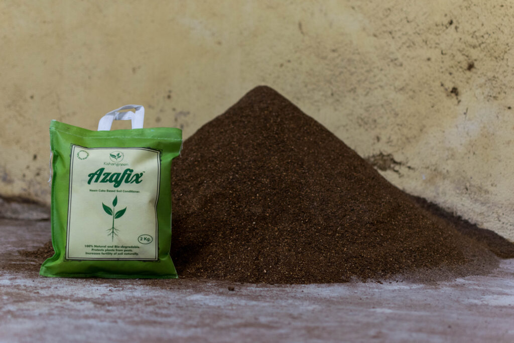 Pure Neem Cake mixed with organic matter derived from neem seeds itself in a metered ratio resulting in a potent conditioner for soil to be used for cultivation of vegetables and flowers.